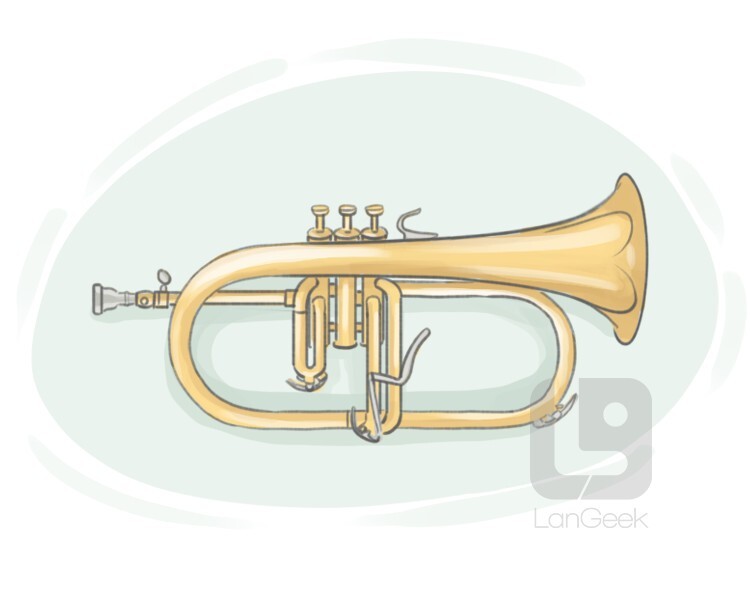a brass instrument resembling a small trumpet with a larger bore and a mellower tone