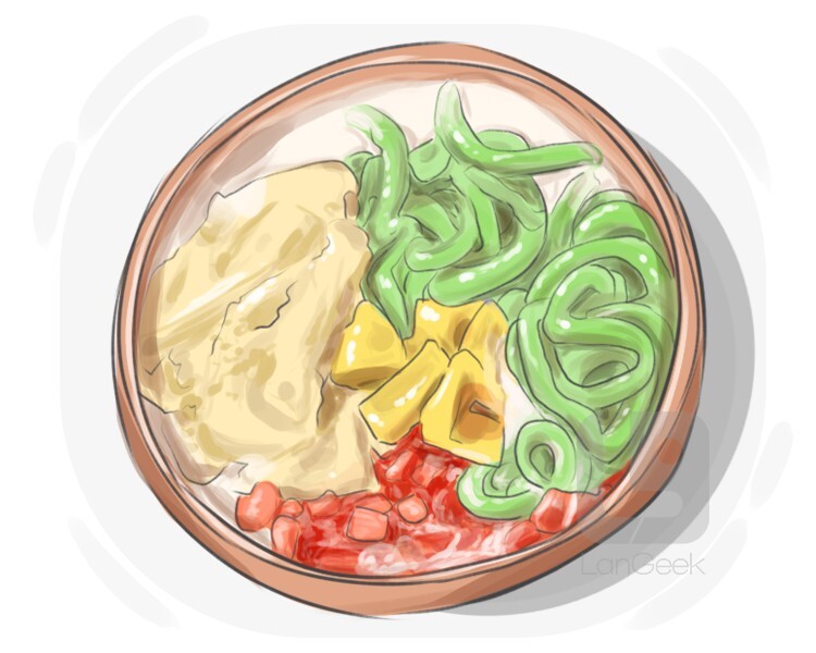 a sweet, hot or cold Chinese dessert soup typically made with a variety of ingredients