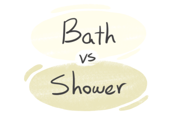 Both showering and bathing involve using water to clean the body. However, a shower is usually quicker and often involves standing under running water, sometimes with soap or shampoo. A bath, on the other hand, usually means soaking in a tub of water, often with soap, shampoo, or bath products, and is commonly used for relaxation.