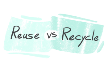 Both are related to environmental issues. However, 'reuse' refers to using a product again, whereas, 'recycle' refers to using some parts of the material of a once-used product to make another product.