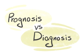 Both are related to diseases and treatment. However, 'diagnosis' is the process through which someone examines whether they are sick or not, but 'prognosis' refers to analyzing how the disease might affect that person.