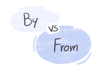 We can use 'from' and 'by' to talk about the position of something or someone, but their meanings are different. 'From' is used to show distance or separation in space; while 'by' is used to show that something is near another thing or person. Have a look: