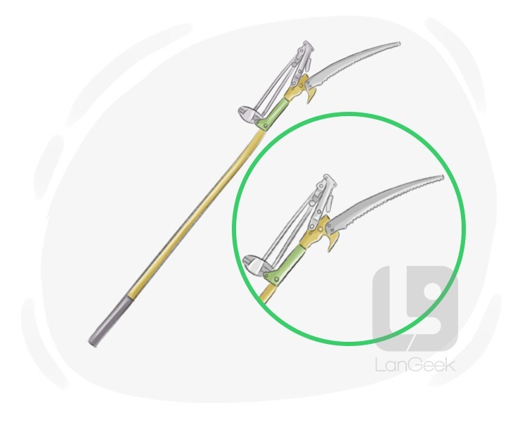 a long pole with a cutting blade or saw at the end, used for trimming high branches or foliage
