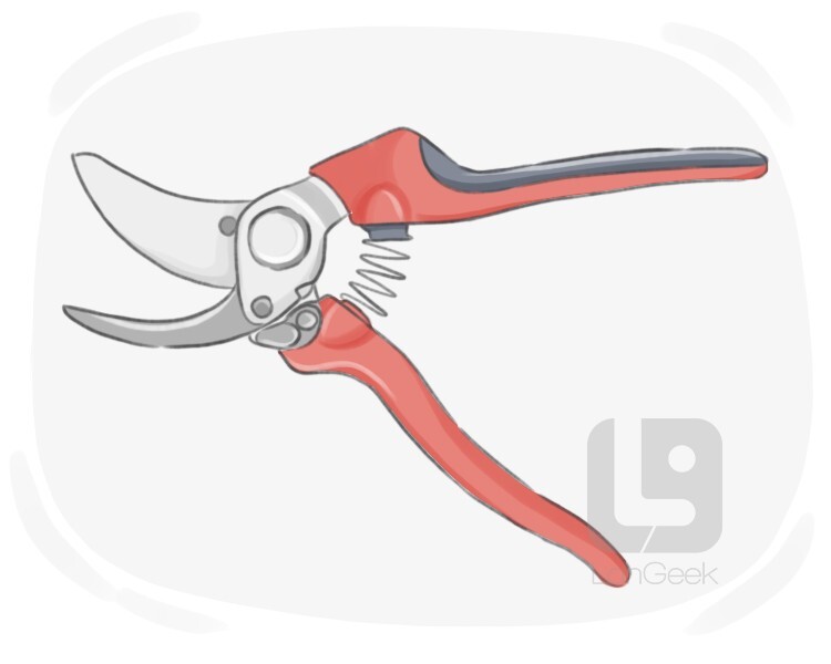 a type of scissors used for trimming and pruning plants, featuring a sharp blade and spring mechanism for cutting through stems and branches