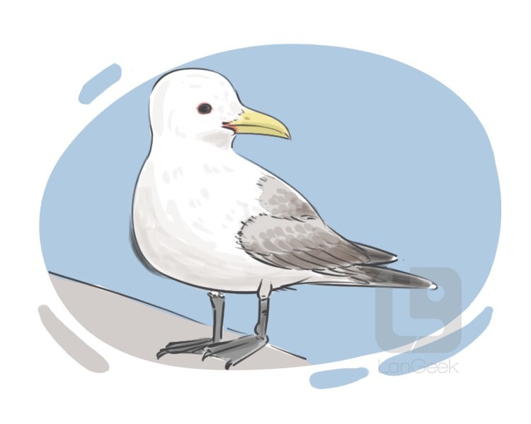 a small cliff-nesting seabird with grayish white plumage that lives in large colonies