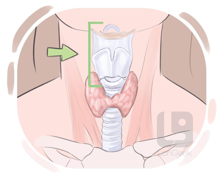 a prominent, shield-shaped structure in the neck that protects the larynx and aids in sound production