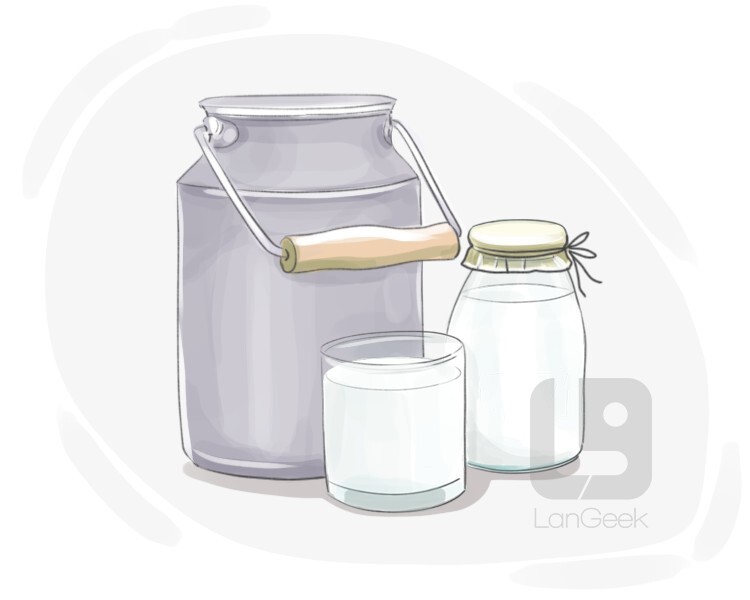 the white liquid we get from cows, sheep, or goats that we drink and use for making cheese, butter, etc.