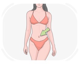 the front part of the body below the ribs that contains the stomach, intestines, etc.