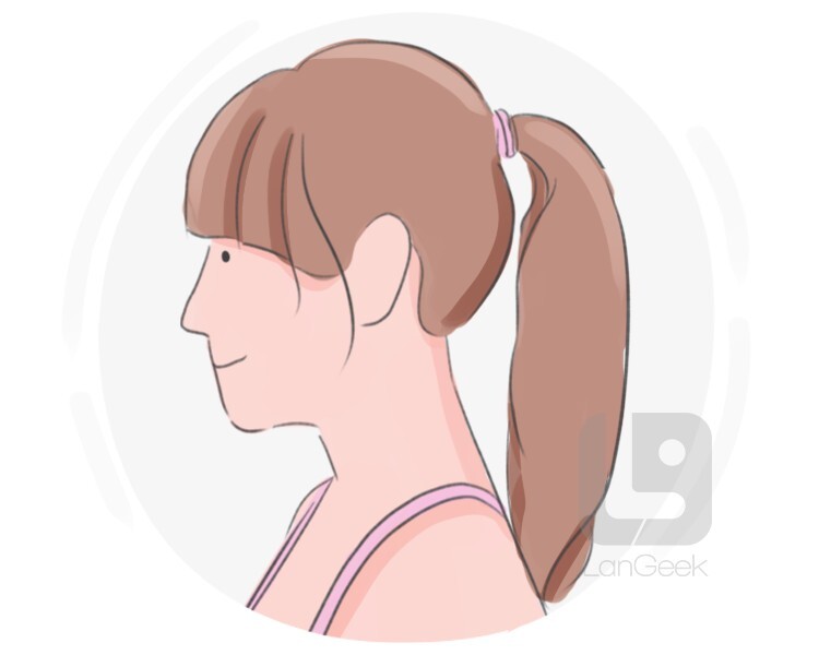 a hairstyle in which the hair is pulled away from the face and gathered at the back of the head, secured in a way that hangs loosely