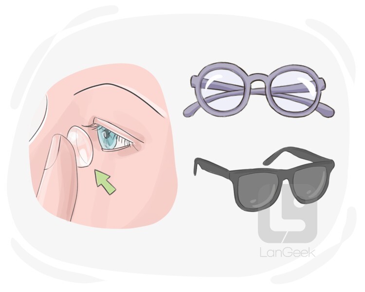 things such as glasses or contact lenses that people put on their eyes for protection or better vision