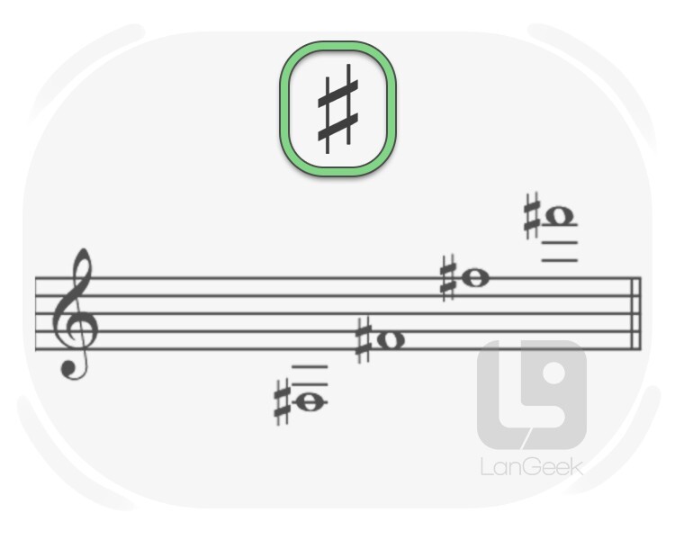 a musical symbol that indicates the raising of a note by two half steps or two semitones, equivalent to the same note as a natural but two half steps higher