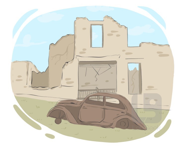 (plural) the remains of something such as a building after it has been seriously damaged or destroyed