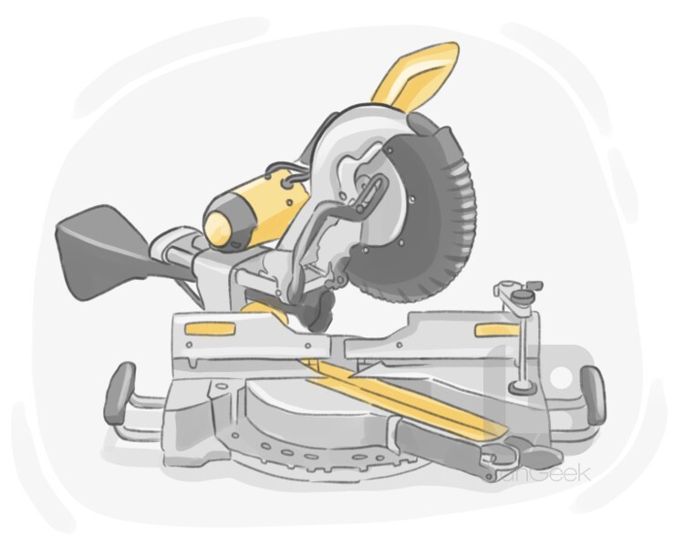 a power tool used for making accurate crosscuts and miter cuts in wood, metal, or other materials, featuring a circular blade mounted on a hinged arm that can be pivoted to different angles for precise angled cuts