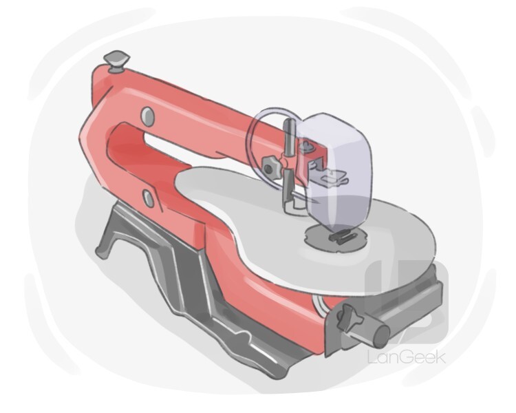 a stationary power tool with a fine, vertical reciprocating blade that allows for intricate and precise cutting in wood, plastic, or other materials