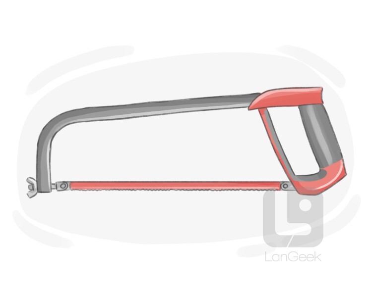 a handheld saw with a fine-toothed blade held under tension in a frame, commonly used for cutting metal, plastic, or other hard materials by pushing and pulling the saw blade back and forth