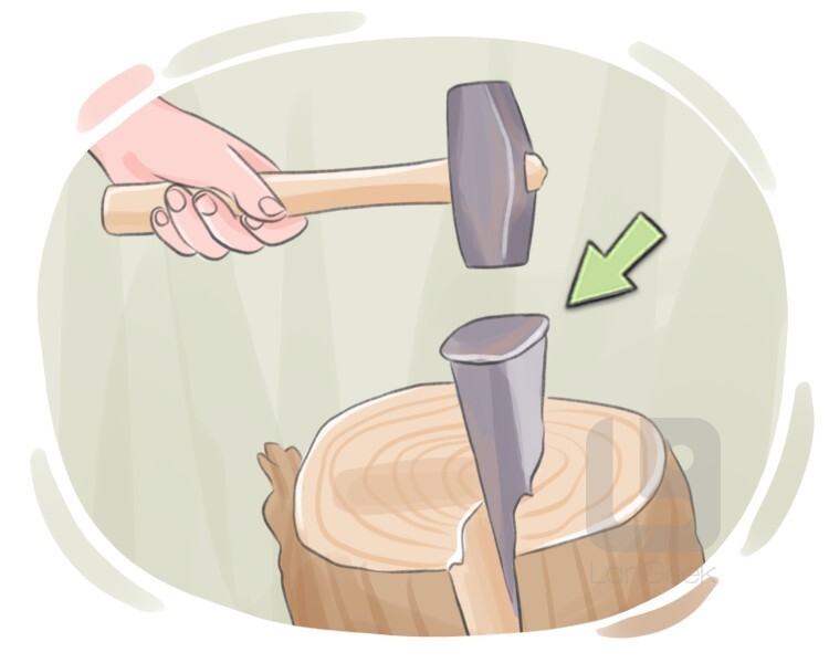 a wedge-shaped tool used with a hammer or mallet to split logs or wood by driving it into the material to create a clean split along the grain