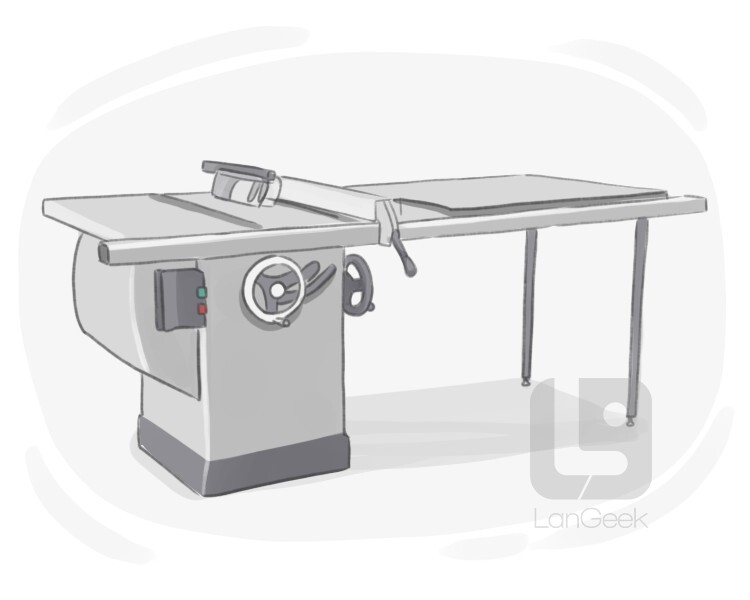 a stationary power tool consisting of a flat table surface with a circular saw blade protruding through it, used for making precise cuts in wood or other materials by sliding the workpiece against the blade along a guide or fence