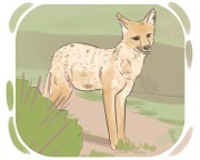a small, wild canid found in the steppes and deserts of central Asia and parts of Eastern Europe. It has a yellowish-grey coat and a bushy tail with a black tip.