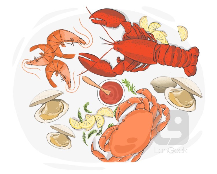 any sea creature that is eaten as food such as fish, shrimp, seaweed, and shellfish