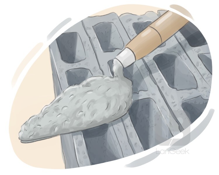 a gray powdery substance that becomes hard if it is mixed with water and sand, used for construction purposes such as sticking bricks of a wall together